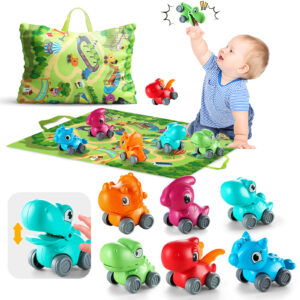 Colorful Dinosaur Toy Cars:Bright colors and cute design.The toy cars set will attract kids and help stimulate kids’ imagination, improve color recognition and practical ability