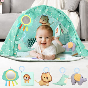 • This baby mat is made from premium, safe cotton that’s soft, comfortable, and machine washable for easy cleaning. 5 detachable activity toys that can spark curiosity from every angle, whether baby is lying down or sitting up. Designed for newborns to toddlers 0-18months, it grows with your child