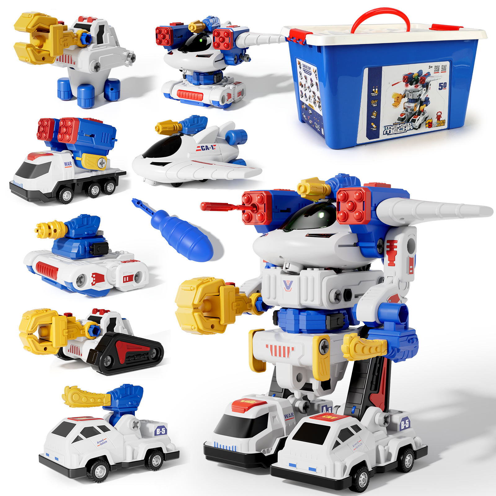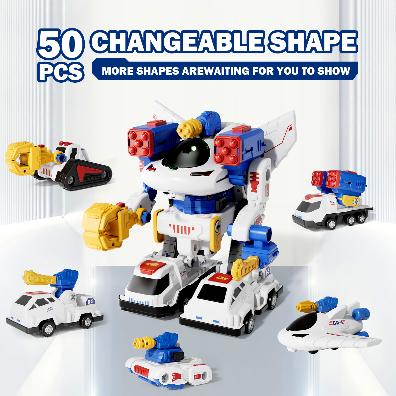 • No batteries needed! Our 50PCS magnetic transformation robot car set easily take apart and reassembles, allowing kids to switch between car and robot modes for endless fun