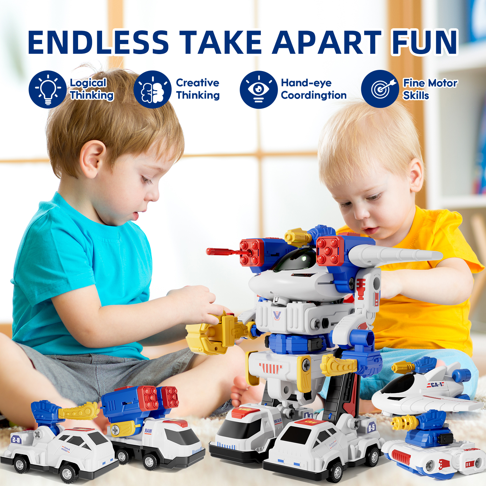 • Our magnetic transform toy sets features magnetic parts that kids also can use screw tool easily snap together, transforming into a tank, grab truck, space theme robot and so on, providing endless fun and exploration for kid boys