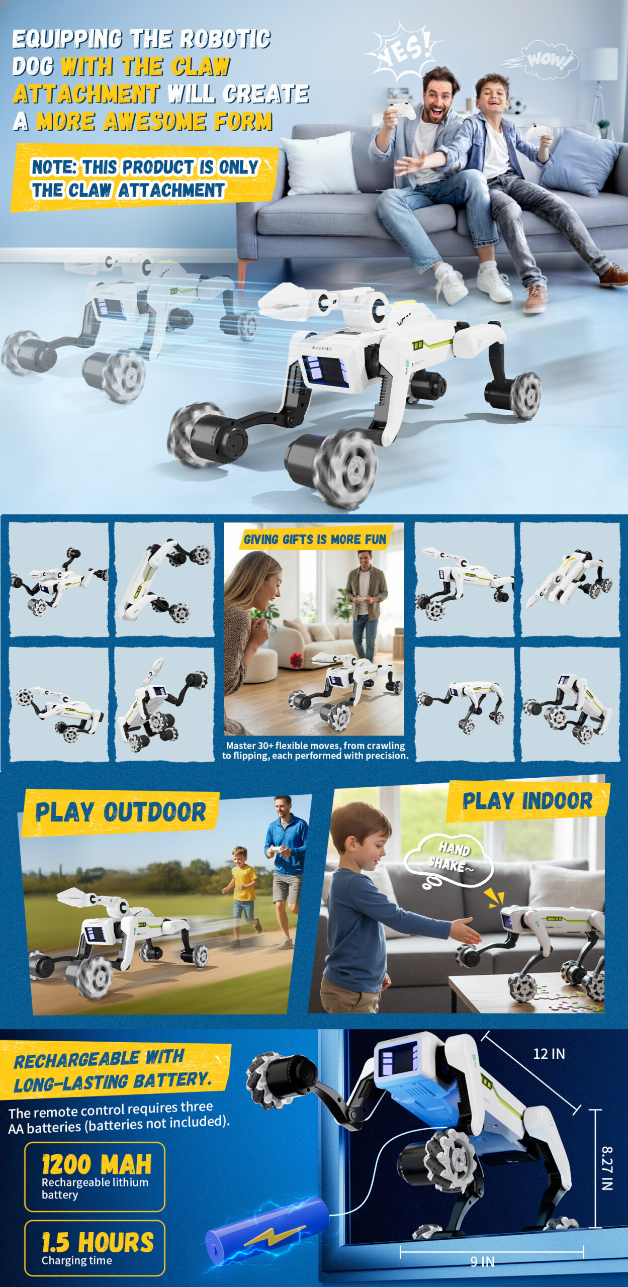 When equipped with the claw attachment, the robot dog takes on an even cooler form. Note: This product includes only the claw attachment