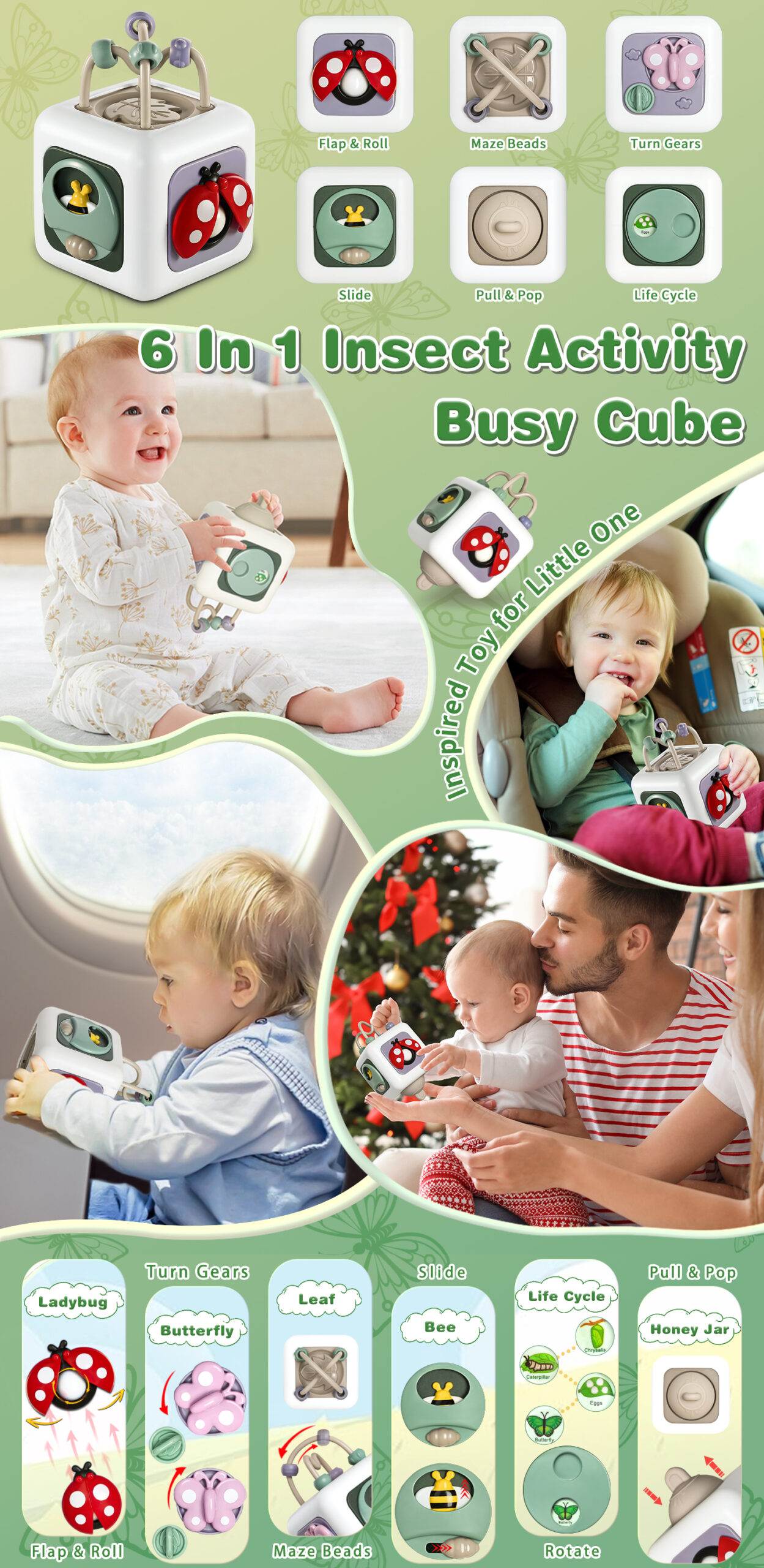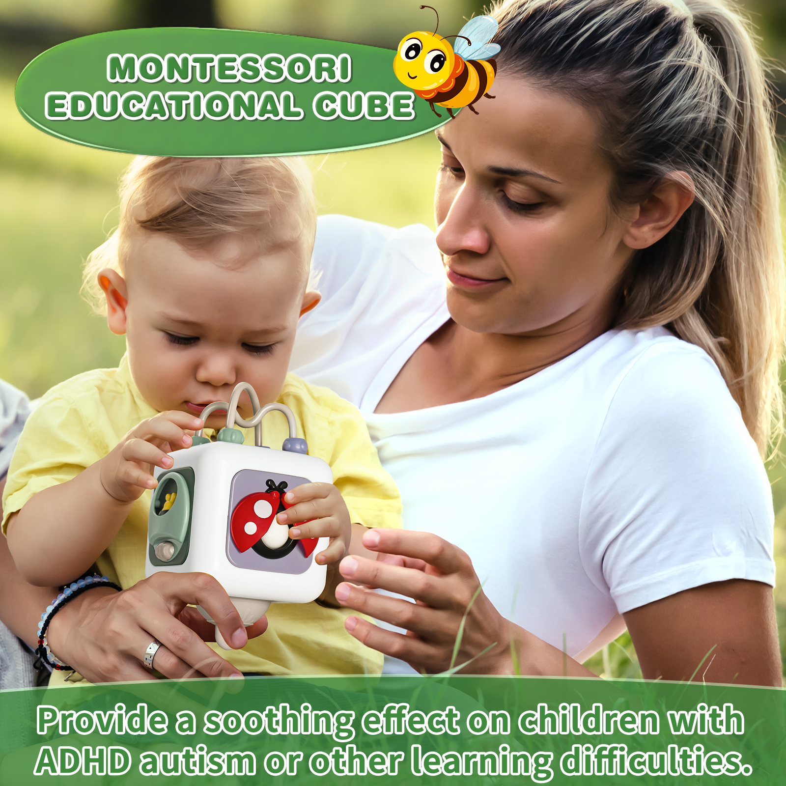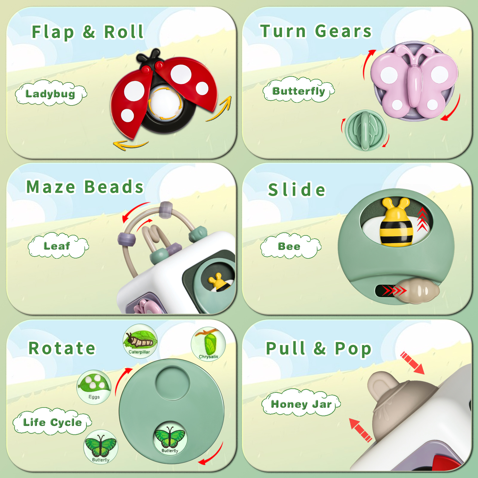 lisfiva Educational Insect Busy Cube Montessori Toys for 1+ Year Old Boys Girls, Car Seat Airplane Travel Sensory Toys for Toddlers 1-3, 1st Birthday Gifts Baby Toys 6 12-18 Months