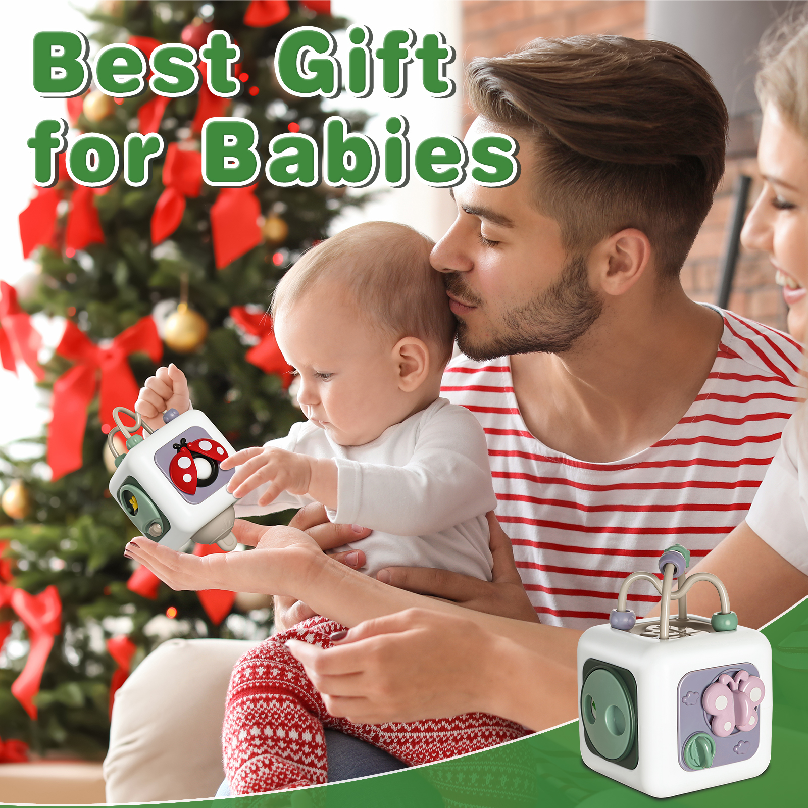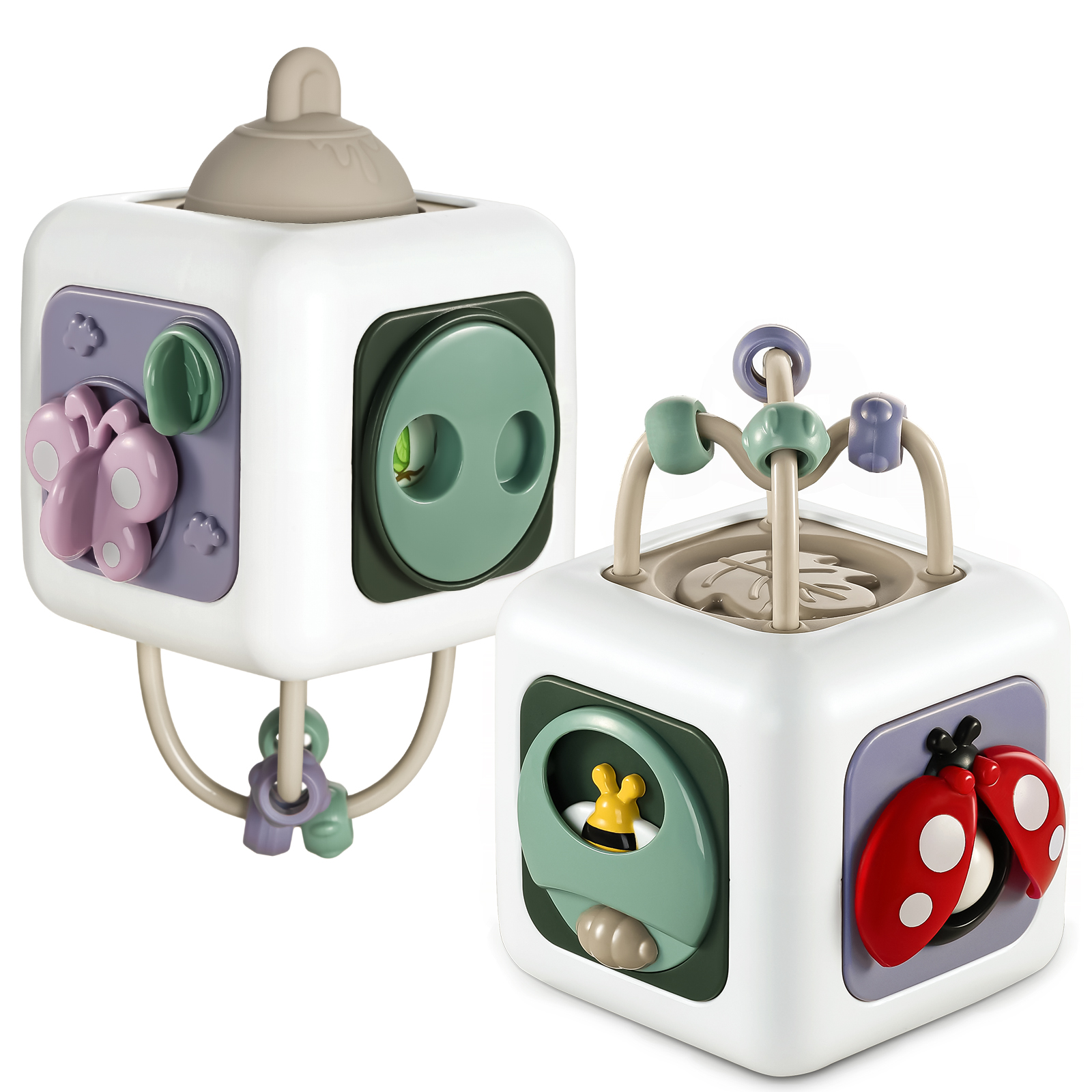 - 【6-in-1 Busy Toy】This activity cube is perfect for keep little ones busy. With a secret ball, peek-a-boo, turn gears, maze beads, life cycle and push & pull