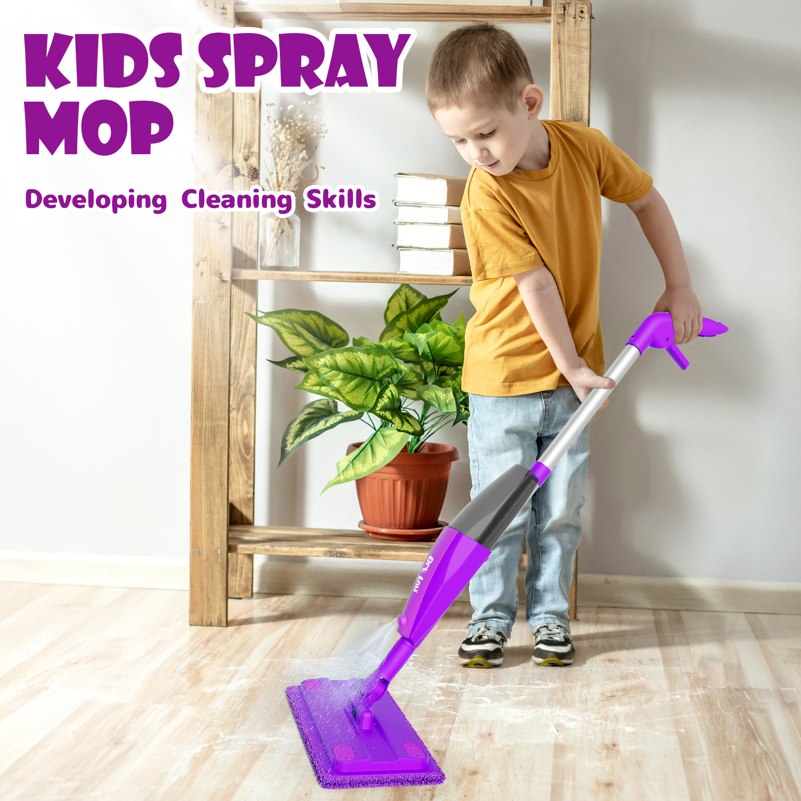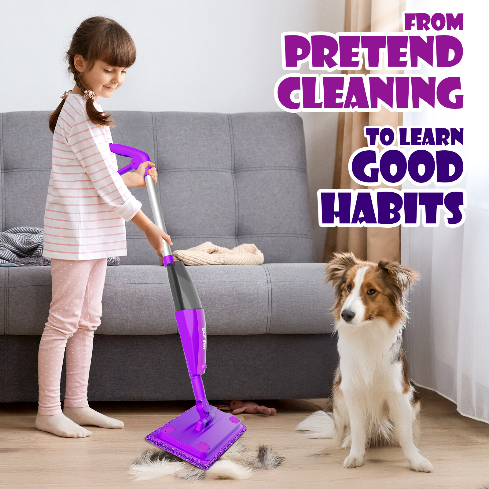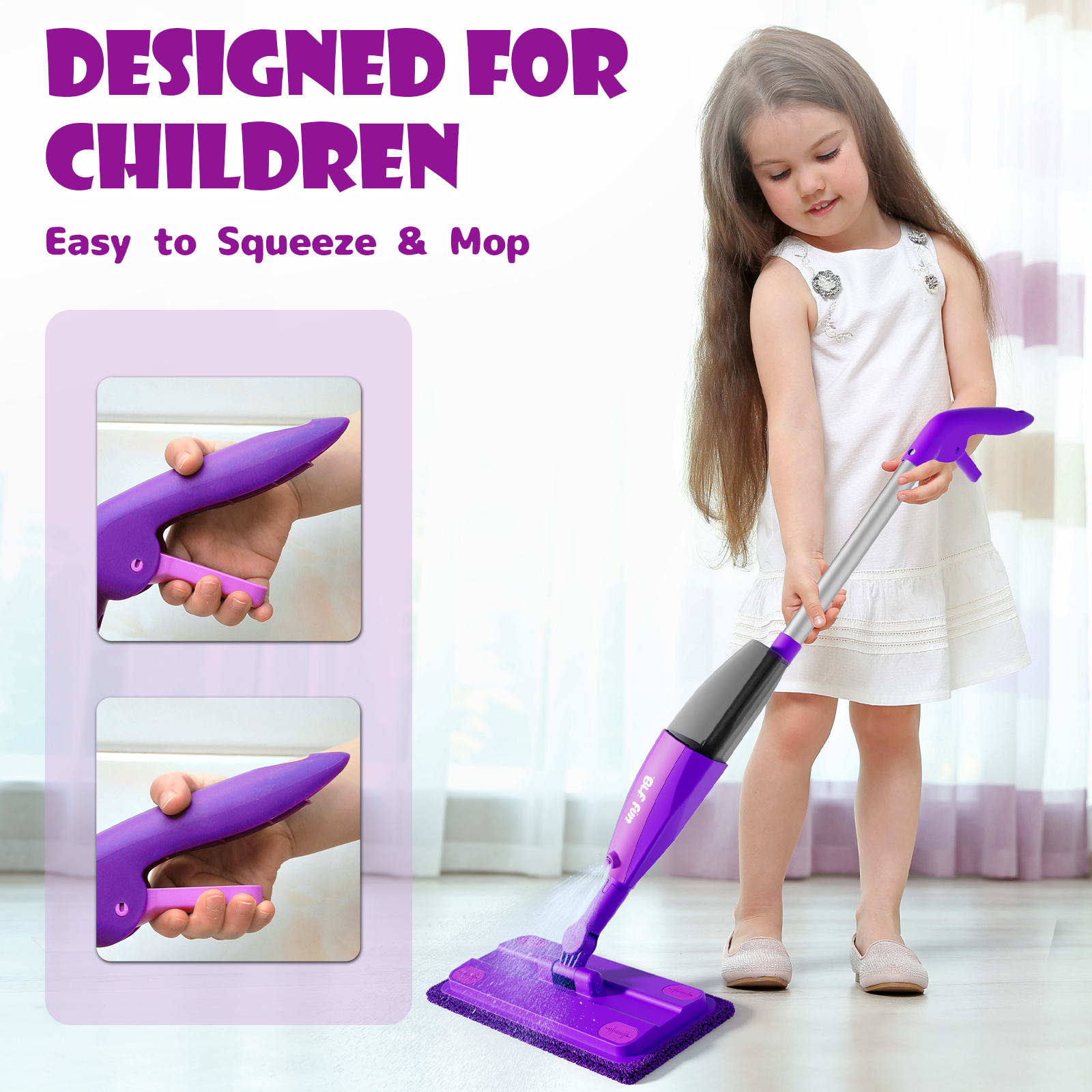 - 【Real Spray Function】This kids mop features authentic water mist spray – press the handle to release water for realistic floor cleaning experience. 29.5-inch height designed specifically for our little family helpers aged 3 and up