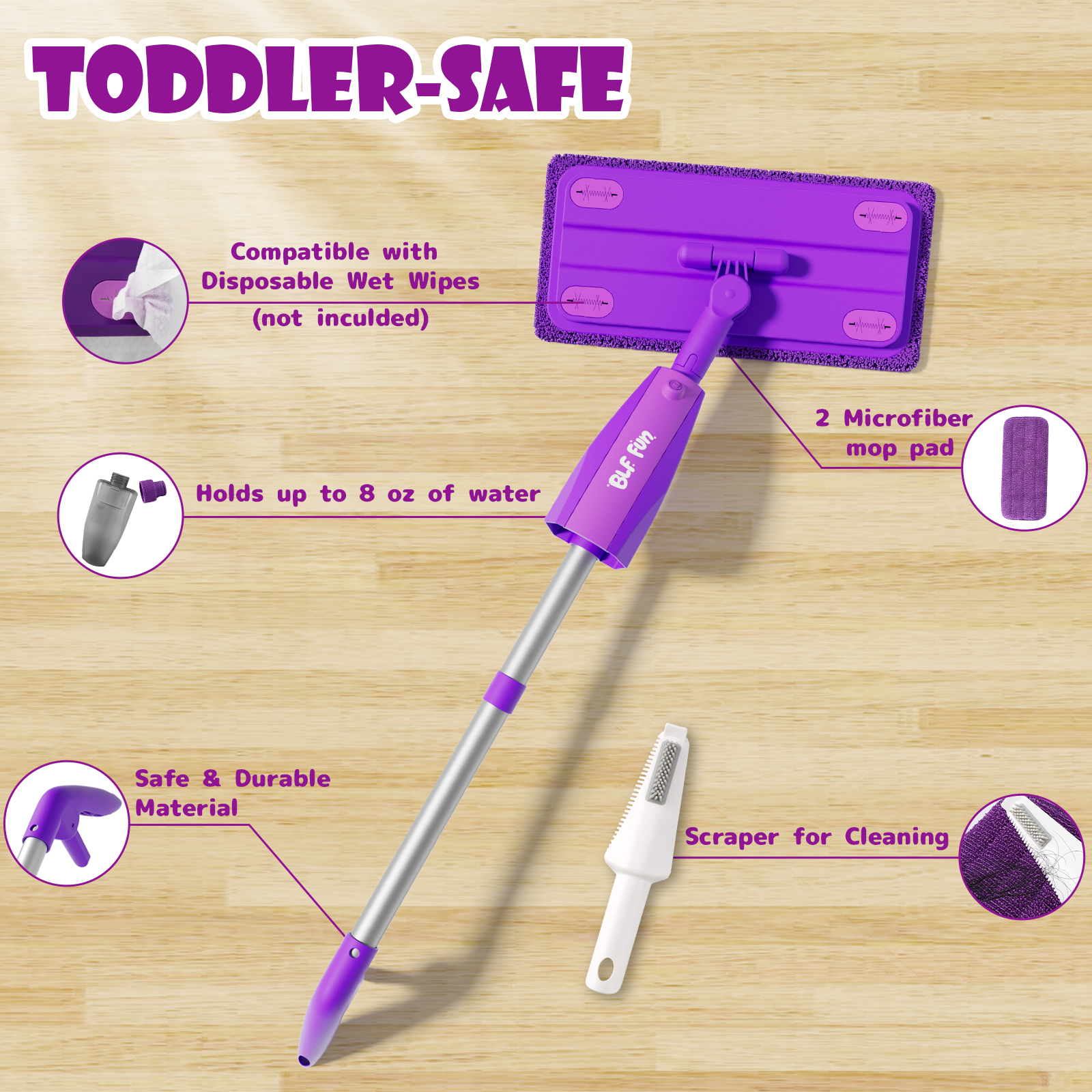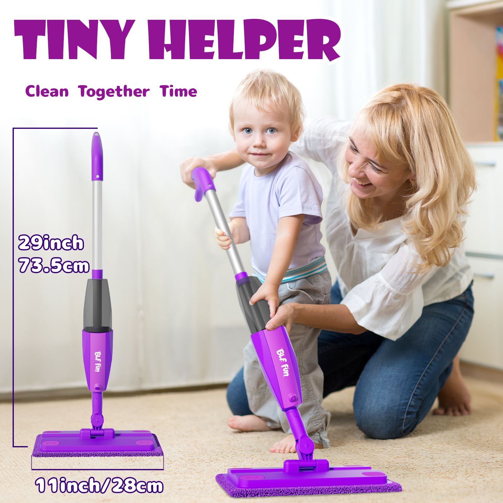 - 【Popular Gift for Little Ones】This toddler mini mop set is a great gift for boys and girls who love to help around the house. The vibrant purple design appeals to children while the functional features provide real cleaning experience